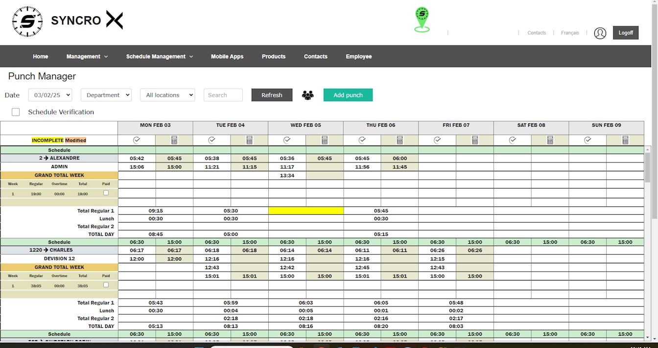 With easy to use tools and a color coded grid, you can quickly view employee punches and make changes.